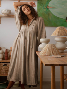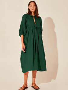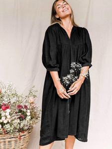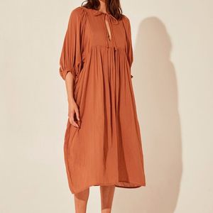 国境を越えたアマゾンの秋の新型の大きいサイズのゆったりした長袖の灯籠の袖のカジュアルなレトロな純色の長いワンピース