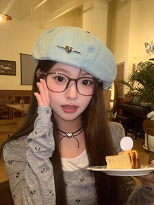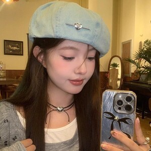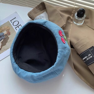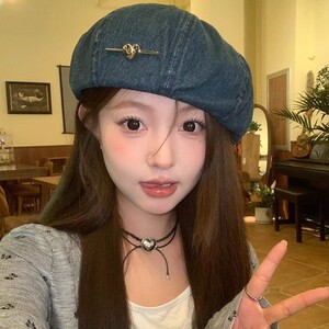 日本のレトロなデニムベレー帽レディース韓国スタイル多用途ファッション顔見せ小さなペインターハット八角形帽子 2025 新しいスタイル