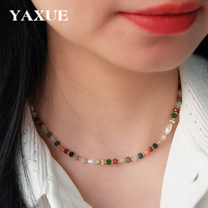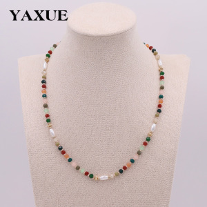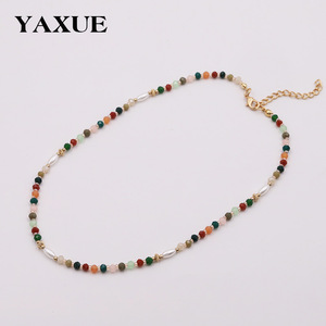欧米のクロスボーダーのカラーの大衆の設計の手作りのビーズの女性のネックレスは真珠のガラスのビーズの鎖のチェーンの装飾品を模倣します。
