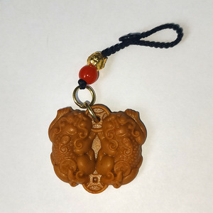 ピーチウッドの男性と女性のダブル貔貅山花の男性と女性の車のキーホルダーピーチウッドのペンダント