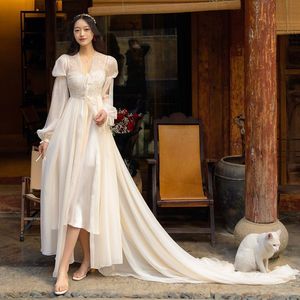 ブライダルガウン花嫁女性結婚式夏ハイエンドロングテールフレンチレース白ナイトガウン夢のような眠れる森の美女