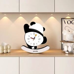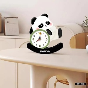 ネットの赤いパンダの新型の高級なアイデアの時計の置物の不倒翁のデスクトップの家庭用の静音の時計の子供の部屋のテーブルの置物
