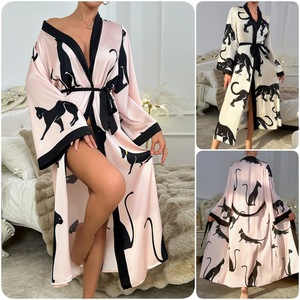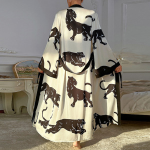 慕菲跨境中东轻奢缎面印花睡袍女大码舒适长款亲肤浴袍家居服838