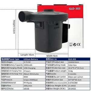40W リチウム電池ポンプ (充電式浮き輪プールおもちゃ) 2000 mAh タイプ C