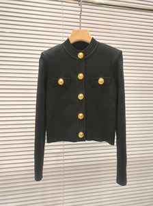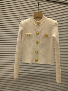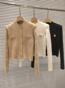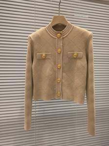 2025春法式名媛小香风轻奢金扣菱格圆领短款针织开衫上衣修身显瘦