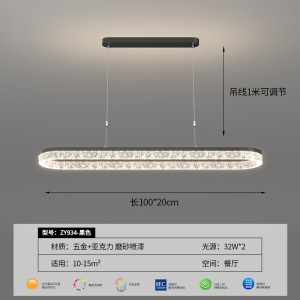 フルスペクトルブラックダイニングシャンデリア100cm
