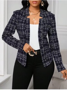 2024 秋冬アマゾンクロスボーダーヨーロッパとアメリカのカーディガンスリムフィット小さな香りスタイルチェック柄小さなスーツジャケット
