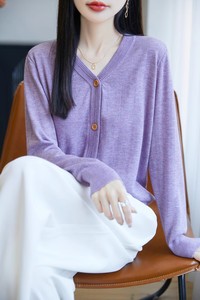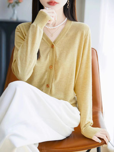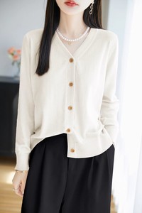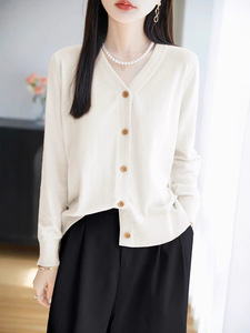 韓国系の雰囲気感の新型精紡ウールvネックニットカーディガン