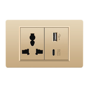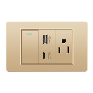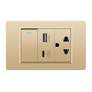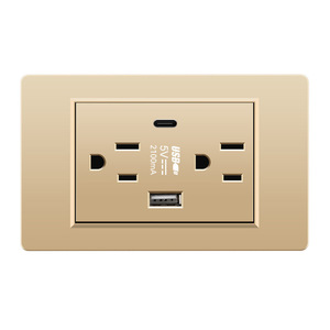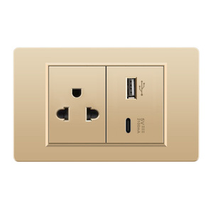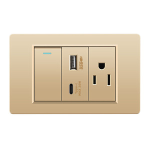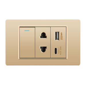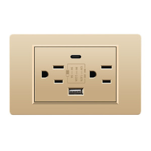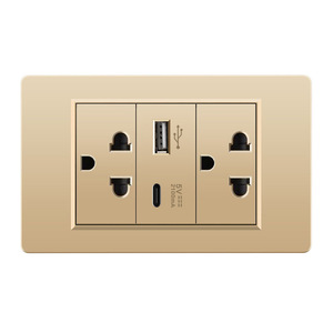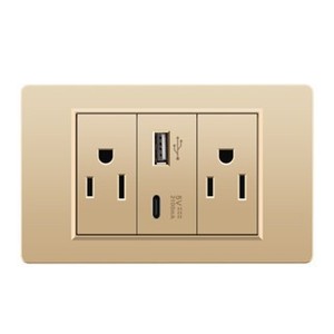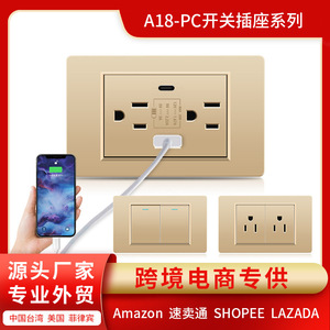 対外貿易美規スイッチソケット金色パネル壁タイ式六穴ソケット台湾ソケット20Wtype-c付き