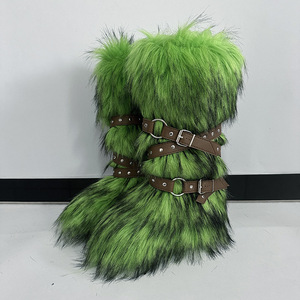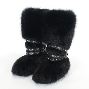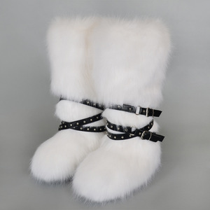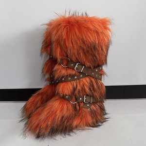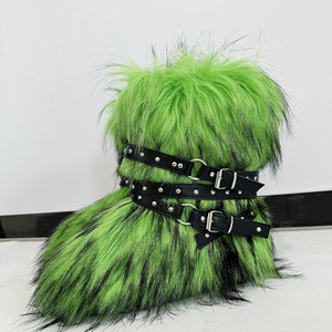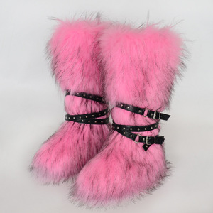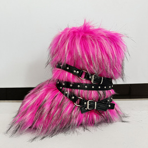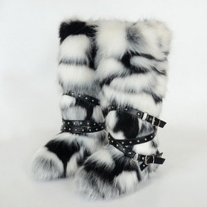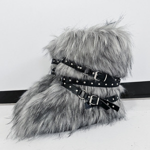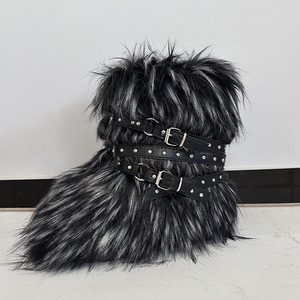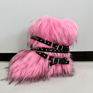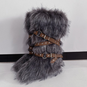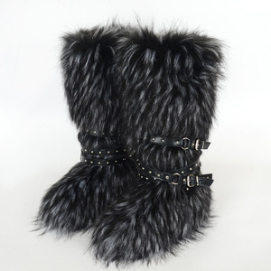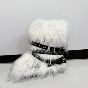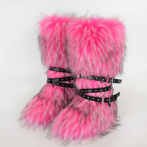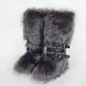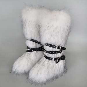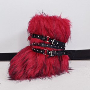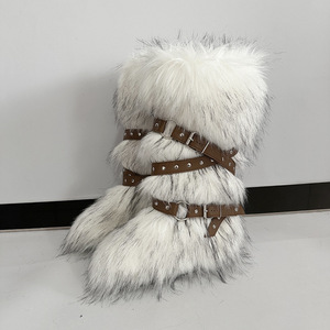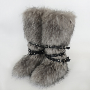 女士冬季仿皮草狐狸毛毛靴子皮带朋克欧美高筒40长筒雪地靴鞋跨境