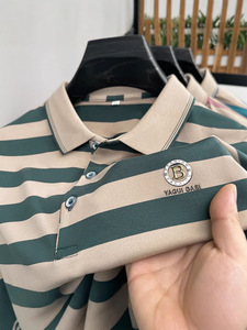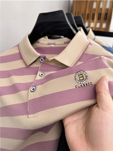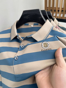 海外越境夏新作メンズ半袖Tシャツラペルストライプルーズ半袖中年ポロシャツ人気トレンド