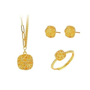 新款轻奢风高级感曝闪小方糖项链镂空花丝方糖戒指耳钉女沙金饰品