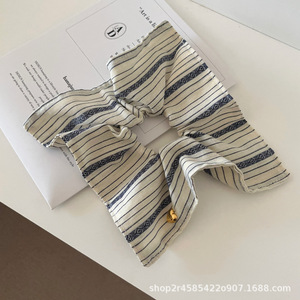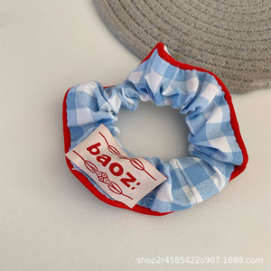 1#ブルーのチェック柄のスカーフ ヘアゴム