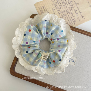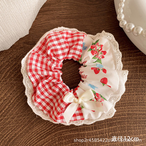 2#レースの縁が付いた赤いチェック柄のヘアゴム