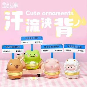汗をかく漫画の動物労働者デスクトップ装飾癒しの感情オフィス文化小さなギフト装飾品