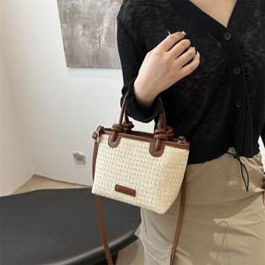 ポータブルクロスボディバッグ 2025 新しいスタイル夏休みビーチスタイルわらバッグ美しいバケットバッグ織バッグ