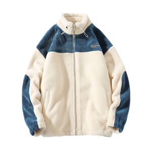 羊羔毛外套撞色拼接男士青少年宽松加绒摇粒绒棉服上衣服休闲夹克