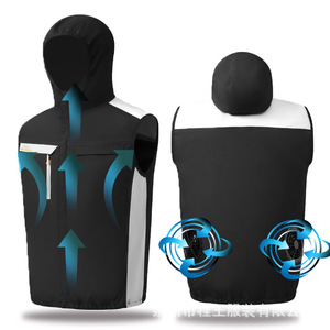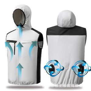 夏天新款带风扇的工作服空调服户外降温连帽制冷无袖马甲厂家批发