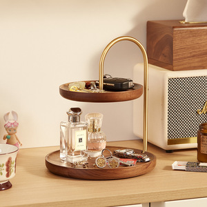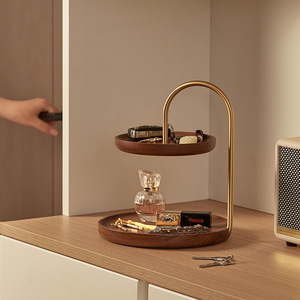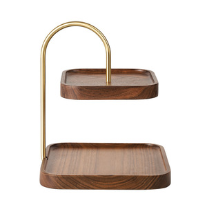 ブラックウォールナットトレイドライフルーツケーキプレートリビングルームフルーツスナックプレートヨーロピアンスタイル二層フルーツプレート木製収納ラック