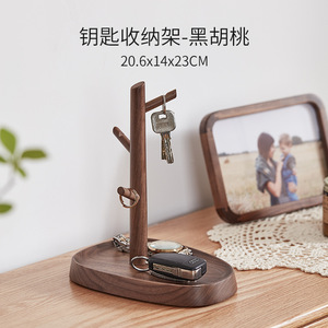 2層ツリー型キーラック(下部収納ボックス) - ウォールナット