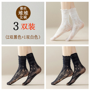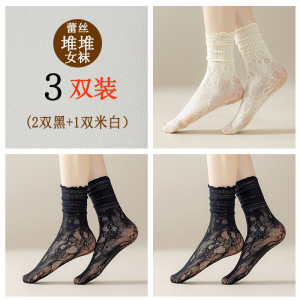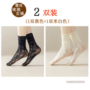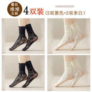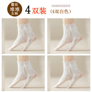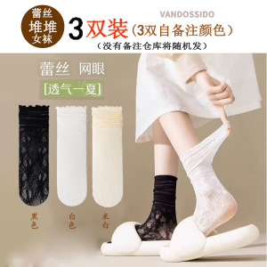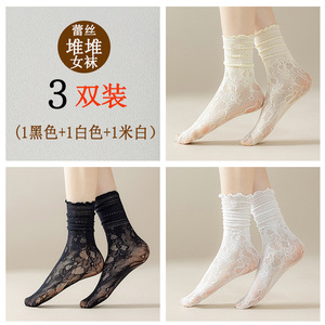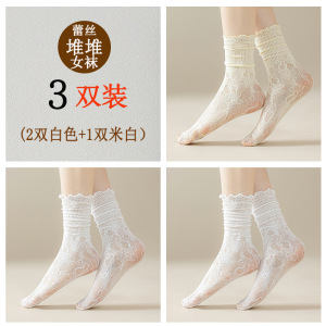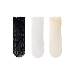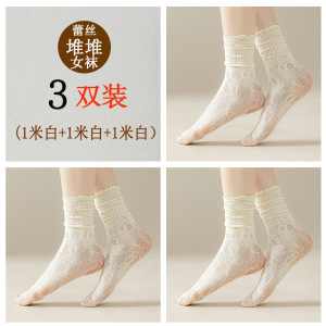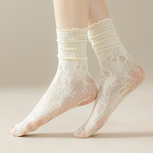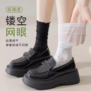 女性用白パイルソックス、夏用薄手レース日本製JKストッキング、小さな革靴付きパイルソックス