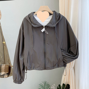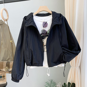 2025春夏新款韩版薄款纯色晒衣短外套女百搭连帽休闲夹克上衣潮
