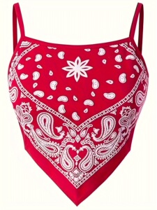 クロスボーダーファッション伸縮性のあるアシンメトリータイドタイヘッドスカーフ花柄プリントキャミソールトップス2点セット半袖