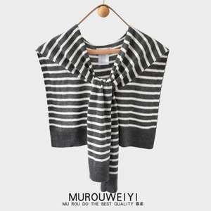 小披肩外搭衬衫空调房搭肩夏打结针织毛线条纹女春秋旅行网红打卡