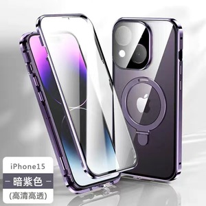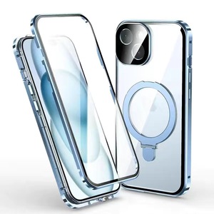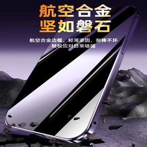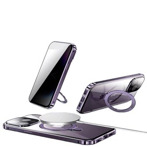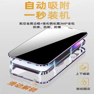 Apple 17 Pro用スマホケース、ヒンジ付き両面ガラス、フルカバー、バックル付き、iPhone16用金属製覗き見防止新モデル