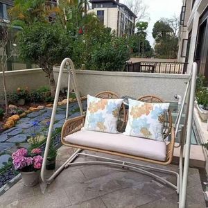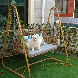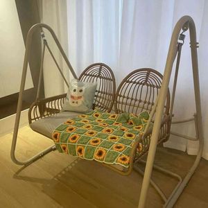 新型ベランダのリビングルーム家庭用室内外二人用ネット赤吊りかご藤椅子ブランコ揺りかご椅子レジャー椅子