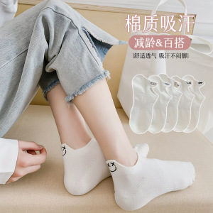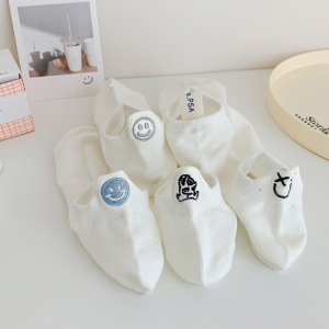 白い靴下の女性の隠れた靴下春夏の薄い靴下の漫画のかかとの刺繍