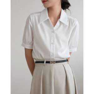公共機関公務員面接スーツ女性夏のプロフェッショナルフォーマルウェア学生教師着用白半袖シャツ