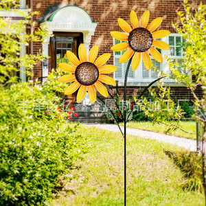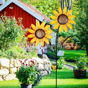 国境を越えた鉄製のひまわり風車、屋外庭園装飾、回転式庭園レイアウト、景観装飾、風車、田園風