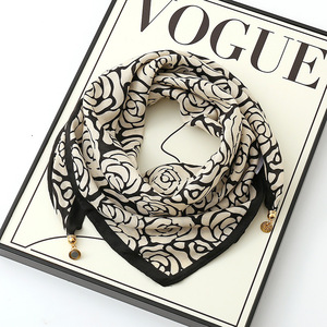 新作綿麻65磁気留め具付きスクエアスカーフ、多用途シルクスカーフ、ネックウォーマー、おしゃれで高級感のあるレディース秋冬定番シルクスカーフ