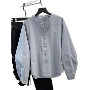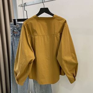 港风时尚双门襟小立领长袖衬衫减龄上衣2025秋季新款宽松衬衣