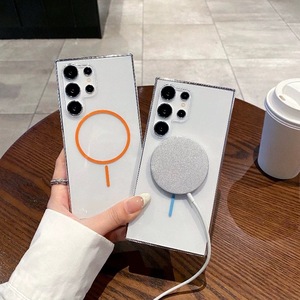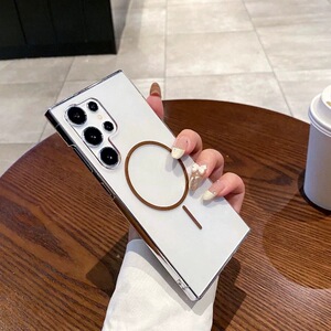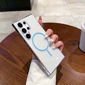 Samsung 25Ultra 細いサークル磁気高透明携帯電話ケース S24Plus 超薄型シンプルな PC 落下防止保護カバーに適しています。