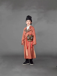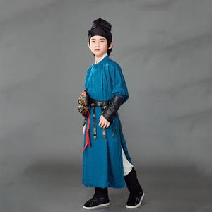 男の子の唐代の丸首の長衣の子供の漢服の李白の中国式の国風の時代劇の演出服の古風な書道の時代劇は撮影します。