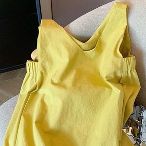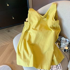韓国黄色 V ネックノースリーブオフショルダーシャツ女性のための 2025 夏の新しいデザイン年齢を軽減するルーズで多用途なトップ