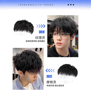 メンズテクスチャードパーマウィッグ、フルリアルヘア、自然なふわふわショートヘア、テクスチャードスタイル、薄毛カバー、ヘアピースメーカー卸売