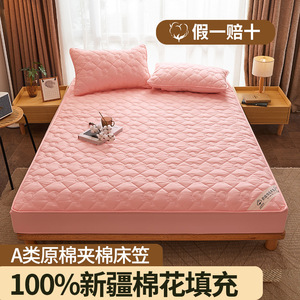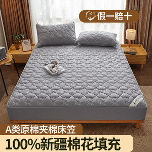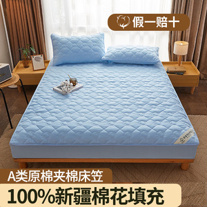 新疆綿充填キルティングベッドシーツ母子グレードベッドシーツシングルピース無地ベッドカバー保護カバーセット完全に囲まれています