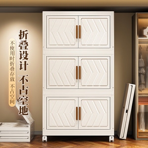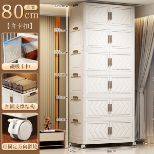 P8H加厚折叠式收纳柜卧室衣物储物柜家用移动多层双开门零食置物