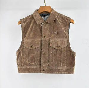 ミュウミュウ レディース ブラウン コーヒー ベスト 25 新しいスエード ノースリーブ パッチ レター ロゴ デニム ショート ベスト ジャケット