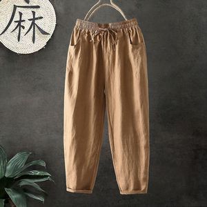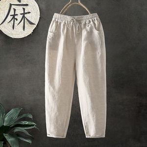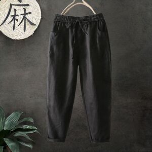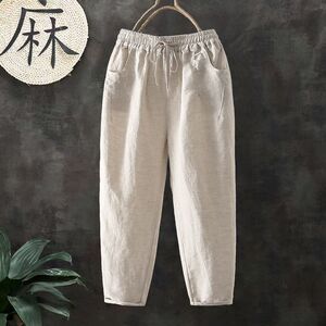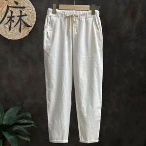ブランド処理純亜麻ズボンの女性はゆったりしていて、痩せています。