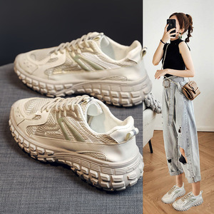 女性のカジュアルなタイヤの靴春夏の新型のファッションの韓国版のお父さんの靴の厚い底の運動靴の女子学生は潮をかけて2024に乗ります。