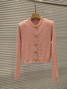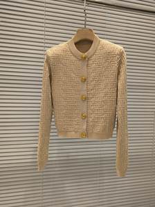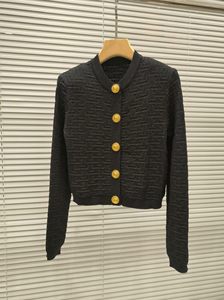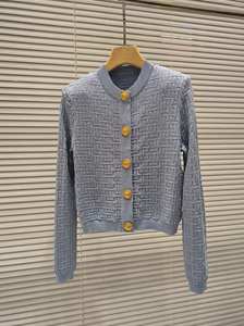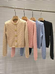 2025年初春新作フレンチスタイルゴールドバックルジャカードスリムフィットラウンドネックショートニットカーディガントップ