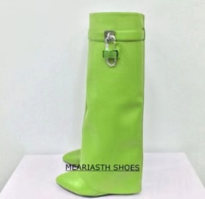 国境を越えた新しいヨーロッパとアメリカの貿易秋冬の新しいロックバックルウェッジレディースブーツハイヒールポインテッドトゥスリッポンレディースブーツ