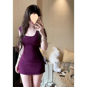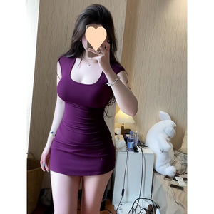 夏の新しい純粋な欲望スタイルのスクエアネック痩身プリーツドレスホットガールタイトな弾性ヒップカバーショートスカート
