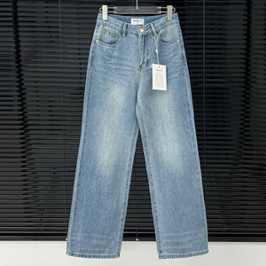 南油のハイエンドの25夏の新型の小さい香の家の後で袋の双Cのアイロンのドリルのlogoの狭いタイプの高腰のまっすぐな筒のデニムのズボンの女性