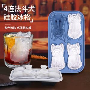 法斗犬シリコン氷格ウイスキー4連氷金型茶飲急凍離型家庭用動物製氷格