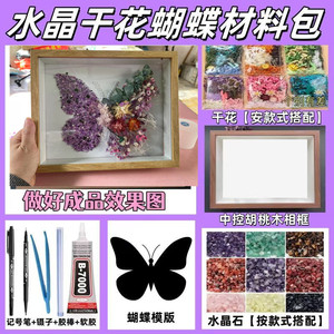 バレンタインドライフラワー水晶材料バッグ手作りドライ花石画紫蝶フォトフレームカッププレゼントdiy緑